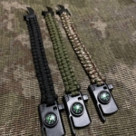 Браслет складається з сплетеного шнурка з паракорда. У нього вмонтований компас щоб ви не заблукали. Ще в ньому є кресало для розведення вогню і скребок за допомогою якого ви зможете розрізати мотузку.