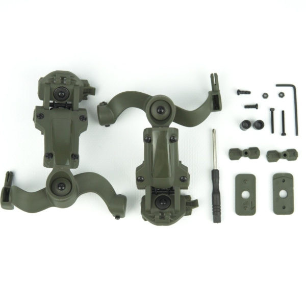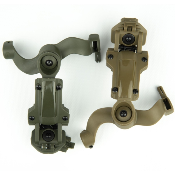 та навушники безпосередньо на шоломи типу FAST, TOR-D, ACH MICH та ін., що мають тип рейок ARC або Wendy M-LOK. Виготовлена з ударостійкого пластику поворотна панель дозволяє крутити муфти практично в будь-якому положенні. Цей адаптер нового покоління дозволяє не тільки зручно регулювати навушники по висоті, але й підтримує обертання на 360 градусів навколо точки кріплення на шоломі для кращого налаштування, а також дозволяє індивідуально налаштувати чашки навушників завдяки кульовому кріпленню фіксатора чашки. Даний тип адаптера виготовлений за подобою знаменитої моделі бренду OPS-Core, максимально функціональний і надійний, що робить його одним із найкращих у своєму роді за зручністю використання та індивідуальними налаштуваннями. Сумісний як з рейковою системою типу ARC, так і M-LOK у моделях Team Wendy.