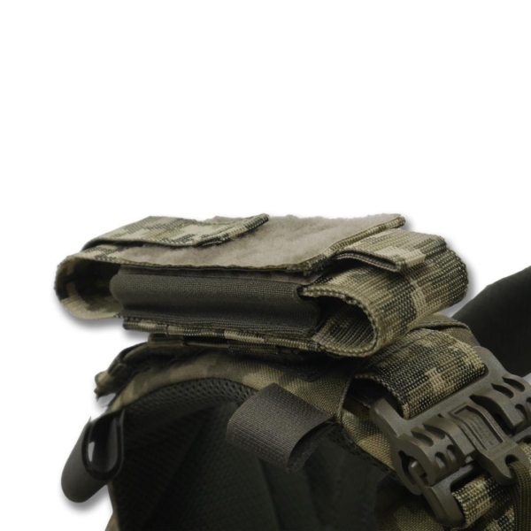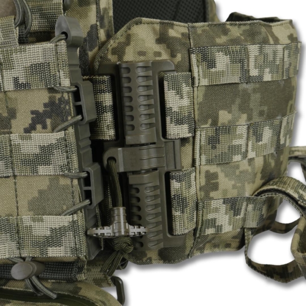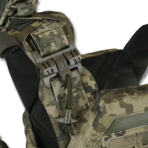 Плитоноска розрахована на плити розміром 25×30 см та оснащена швидкоскидною системою, яка дозволяє миттєво зняти спорядження у разі потреби.
