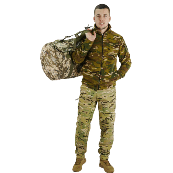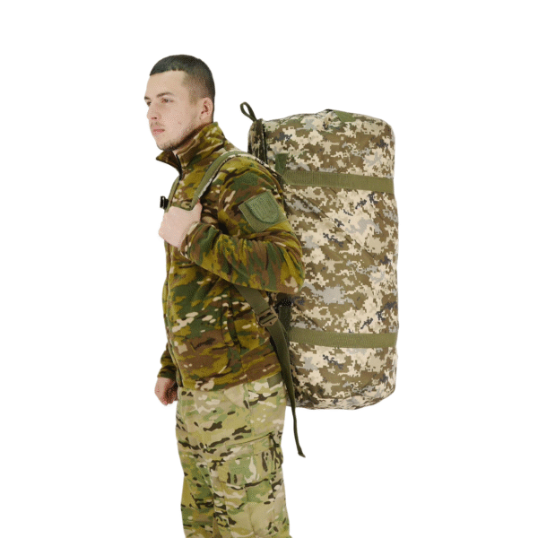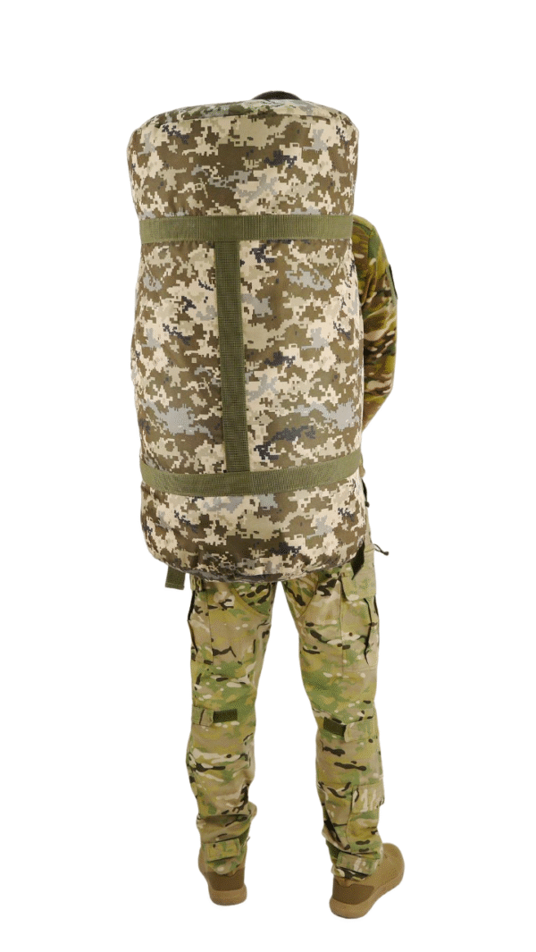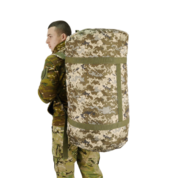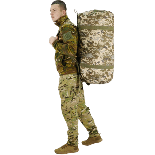 Для цього баул обладнаний двома м’якими лямками з міцної стропи шириною 5 см. Лямки дають можливість носити баул на спині як рюкзак, і в руках як звичайну сумку.
