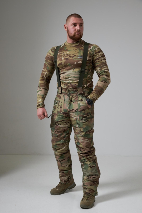 Знімні підтяжки легко від’єднуються за допомогою застібки. Пошиття фабричне, орієнтоване на потреби тактичного використання, тривалого перебування на холоді або знижену рухливість. -
