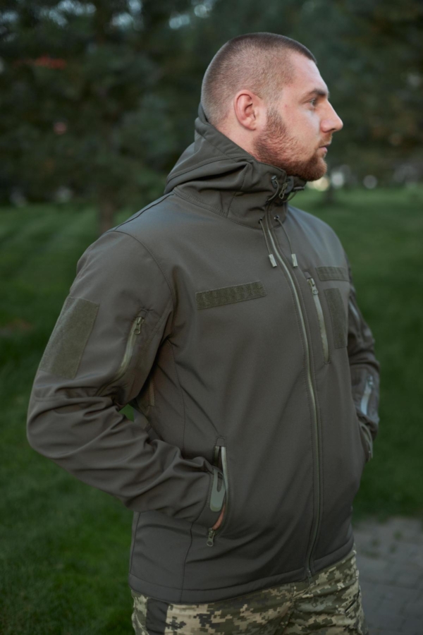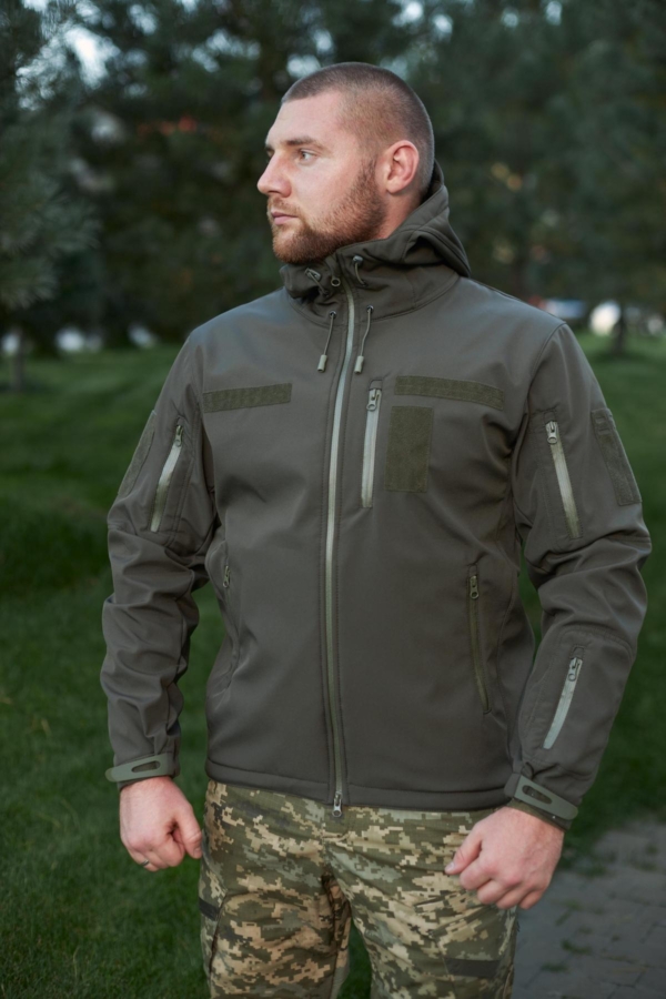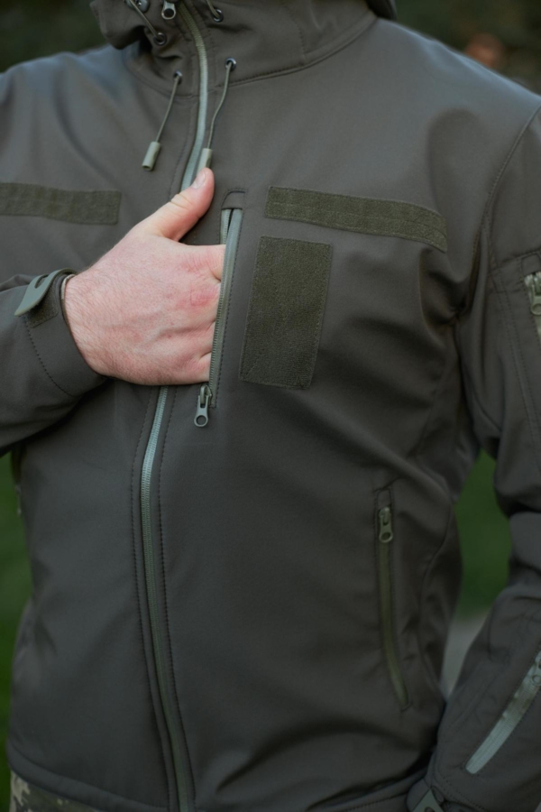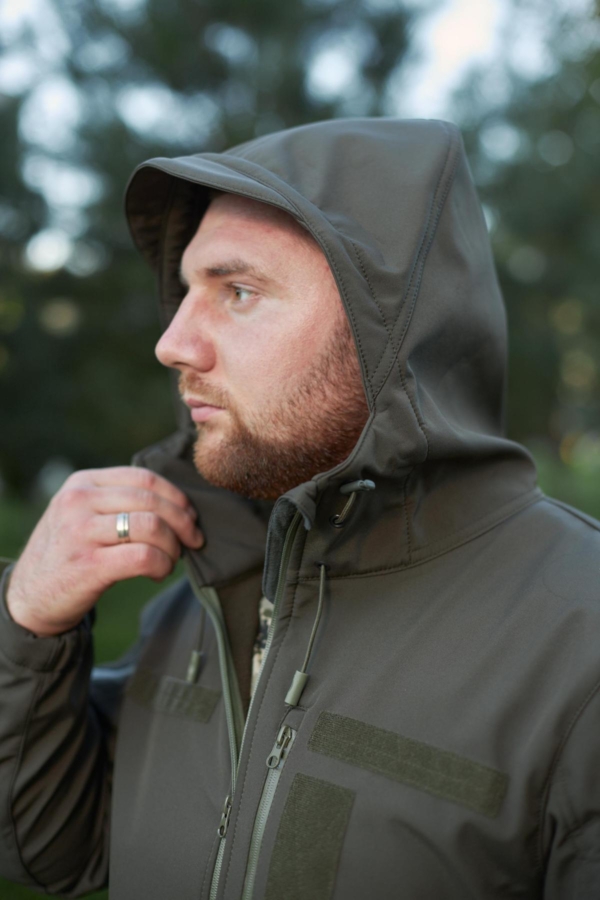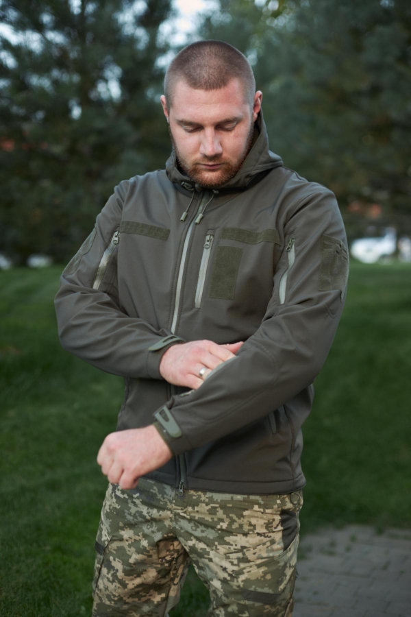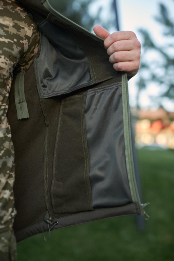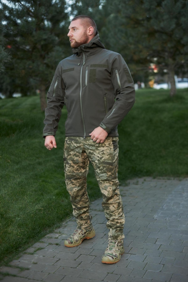 Матеріал: еластична тканина Soft Shell із флісовою підкладкою, що утримує тепло та дозволяє вільно рухатись. Підходить для використання восени та навесні.