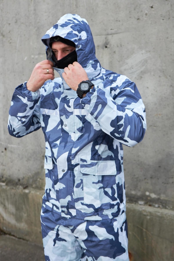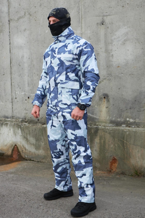 Зимовий маскувальний костюм синьо-білий, непромокаючий