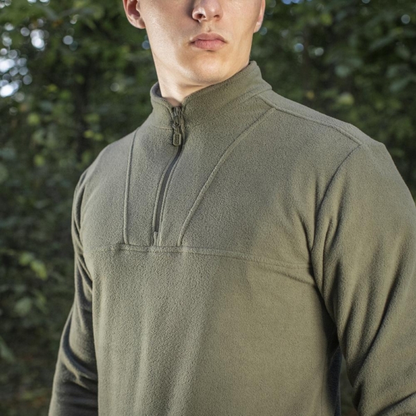Delta Fleece флісовий пуловер від бренду M-Tac. Рукава обладнані прорізами під великий палець, що дає можливість гріти долоні в рукавах, при цьому залишаючи пальці вільними.