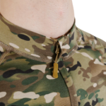 • комір із блискавкою до середини грудей — можна носити як стійку або відкладний, захищає шию від сонця, вітру, піску та тертя спорядження