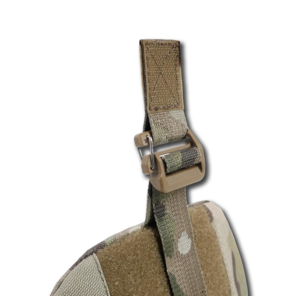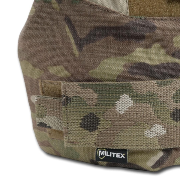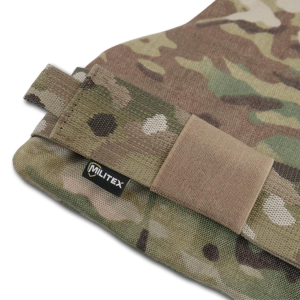Рекомендовано кріпити даний елемент захисту на бронежилет Militex. Плечовий захист кріпиться до плечової частини плитоноски за допомогою велкро панелі. Пластикова рамка з замком від Японського виробника WJ у формі D-кільця слугує з’єднувальним елементом і допомагає за необхідності зняти плечову систему. Особливу увагу при розробці плечового захисту було приділено анатомічній формі виробу. Плече сконструйовано таким чином, що висота кріплення до плитоноски регулюється завдяки вертикальній стропі з велкро липучкою. Плечовий захист також налаштовується по об’єму руки та фіксується спеціальною горизонтальною стропою з перетяжкою 4мм.