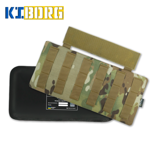 5. по периметру лицьової частини підсумка вертикально розташована система molle для кріплення додаткового спорядження ;