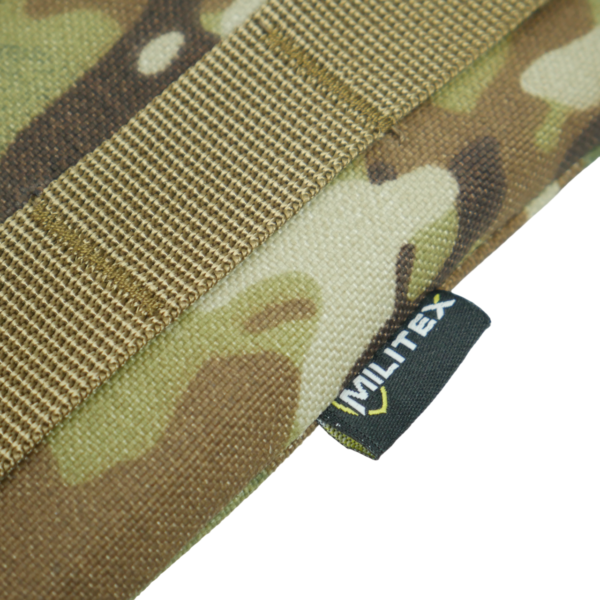 Чохол для захисту попереку під балістичний пакет Militex пошитий із матеріалу CORDURA 1000d - надміцної тканини, стійкої до стирання та високих навантажень. Стропа 100% Поліамід.