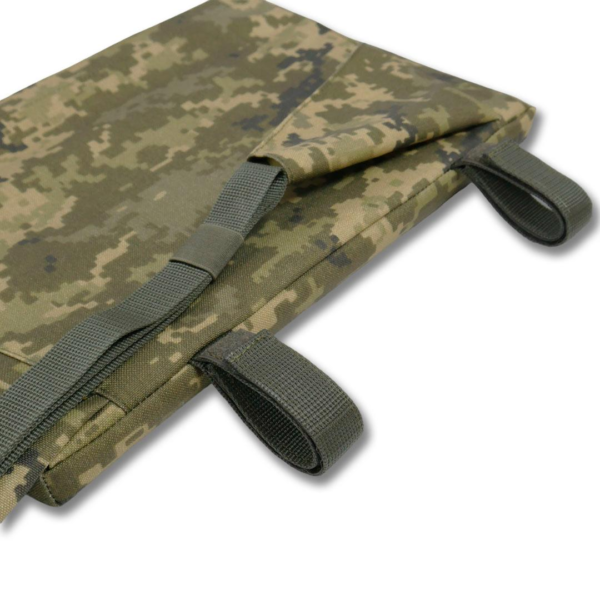 - також можна фіксувати сидушку за допомогою спеціальних строп на липучці на систему Molle на плитоноску чи пояс РПС;