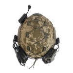 Комплект шолом PE з кавером піксель, навушниками M32H PLUS, адаптерами та ліхтариком — надійний захист голови та слуху з продуманим функціоналом для комфортного використання у різних умовах.