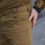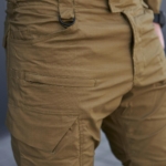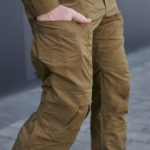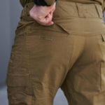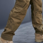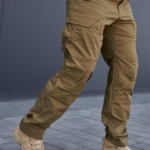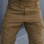 Штани обладнані відділами для зовнішніх наколінників, що підвищує захист під час інтенсивних навантажень. Низ штанин регулюється липучками, а в талії передбачене регулювання за допомогою задніх липучок, що дозволяє підігнати посадку індивідуально. Тканина ріп-стоп відзначається високою зносостійкістю та довговічністю.