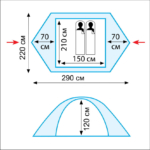 Тип: Универсальная палатка Количество мест: 2 Вес палатки: 3,95 кг. Размеры: 290 х 210 см. Количество входов: 2 Материал каркаса: Durapol 8,5 мм. Материал дна: 100% полиэстер 75D/190T 7000 мм. в ст Материал тента: 100% полиэстер 75D/190T RipStop 5000 мм. в ст Материал внутренний палатки: 100% дышащий полиэстер Колышки: Металлические Универсальная двухместная туристичсекая палатка Tramp NISHE 2 (V2) с двумя входами , двумя тамбурами увеличеного объема и площади. Дополнительная консольная дуга увеличивает площадь и внутренний объем тамбура, повышает ветроустойчивость и ветрообтекаемость палатки.Для создания благоприятного микроклимата палатка Nishe 2 Tramp снабжена двумя вентиляционными окнами, а выходы в спальное отделение продублированы москитной сеткой. Купить палатку Tramp Nishe 2 - это верное решение, поскольку это отличное качество за приемлемую цену. Особености : - Двухслойная палатка с двумя входами - Внешний тент палатки устойчив к ультрафиолетовому излучению - Внешний тент имеет пропитку, задерживающую распространение огня - Увеличенный тамбур - Два вентиляционных клапана - Светоотражающие оттяжки и элементы на вентиляции - Все швы проклеены - Идеальна для туристических походов в весеннее, летнее и осеннее время Характеристики: Количество мест: 2 Тент : Полиэстер 75D 190T RipStop PU Количество комнат: 1 Внутренняя палатка: дышащий полиэстер Количество входов: 2 Дуги/стойки: Дюрапол 8,5 мм. Вес: 3.56 кг. Дно: Полиэстер 75D 190T PU Размеры внешние: 290х220х120 см. Водостойкость тента: 6000 мм. Спальное место: 150х210х120 см. Габариты в упаковке: 13x59x17 см.