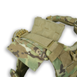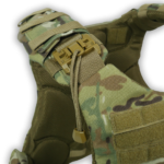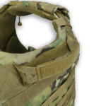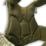 Жилет обладнаний збільшеними панелями MOLLE для розміщення спорядження, посиленою евакуаційною ручкою та демпферними вставками з 3D-сіткою для зручності при тривалому носінні. Лямки анатомічні, з подвійним регулюванням і можливістю заміни м’яких подушок чи встановлення додаткового захисту. Камербанди мають кишені для пакетів та регулювання з фіксатором, закритим демпферною подушкою.