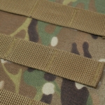 - Cordura 1000D щільністю 380 г/м² з NIR-просоченням і поліуретановим покриттям, стійка до вологи, стирання й вигорання;