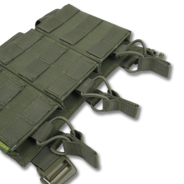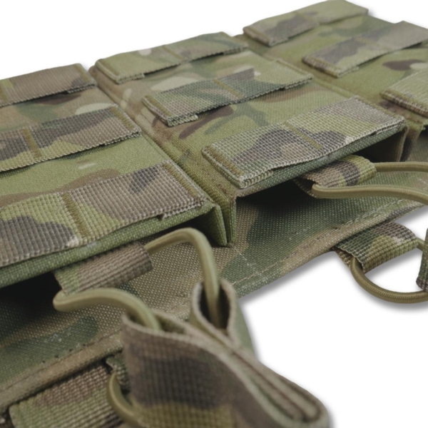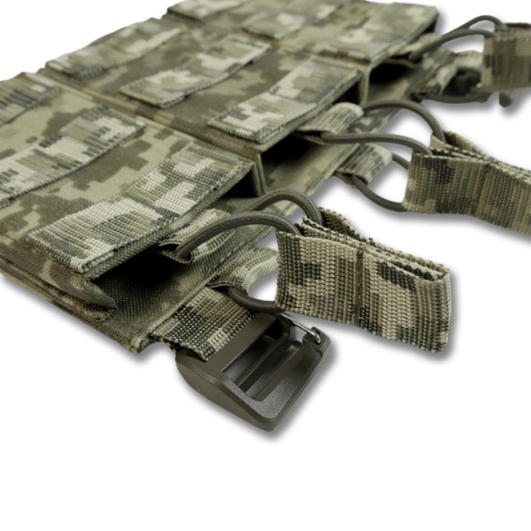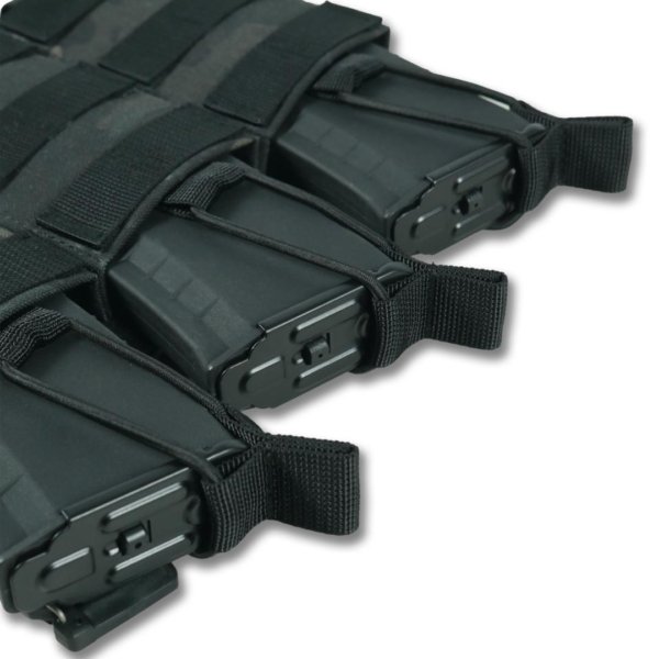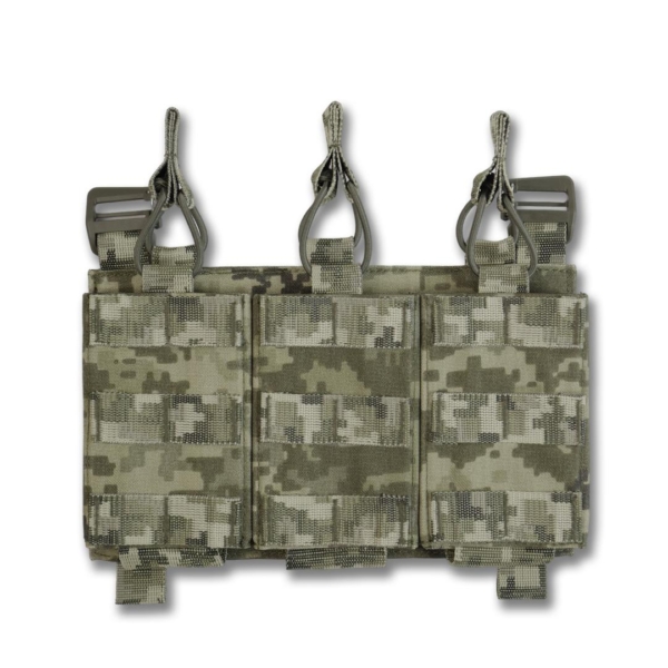 Функціональна, легка зʼємна панель з 3-ма підсумками під 1 магазин для плитоноски дозволить надійно розмістити 3-и магазина серії АК/AR/РПК та забезпечить швидке перезарядження під час виконання бойових задач.