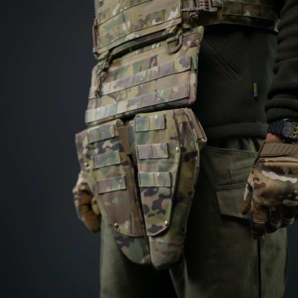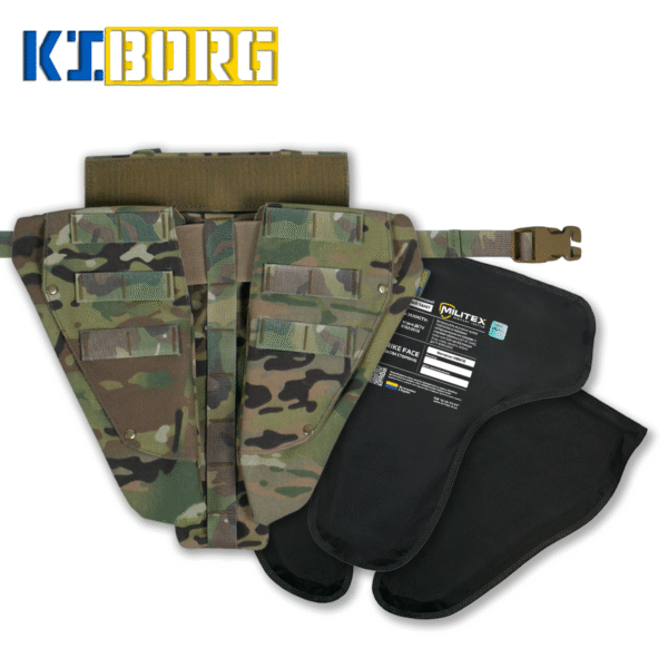 Модульний балістичний напашник Kiborg з балістичним захситом 2 класу захисту від компаінї Militex, спеціально розроблений для надання стабільного та правильно орієнтованого захисту паху та нижньої частини живота у різних позиціях.