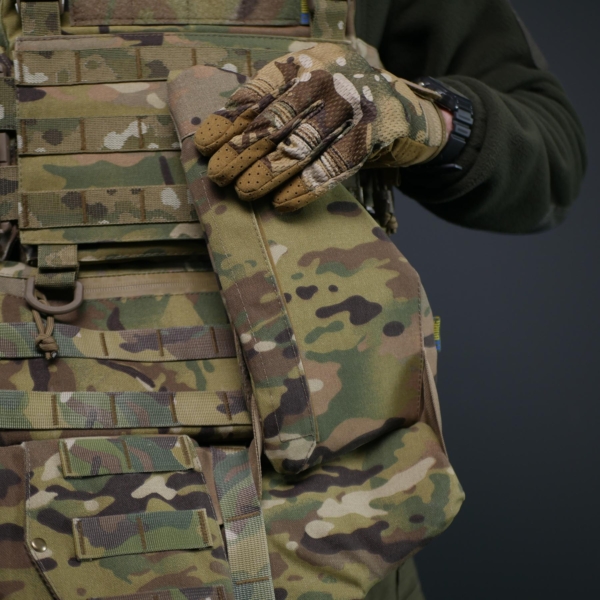 - На передній частині напашника розташована система molle для кріплення додаткового спорядження;