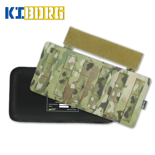 5. по периметру лицьової частини підсумка вертикально розташована система molle для кріплення додаткового спорядження ;