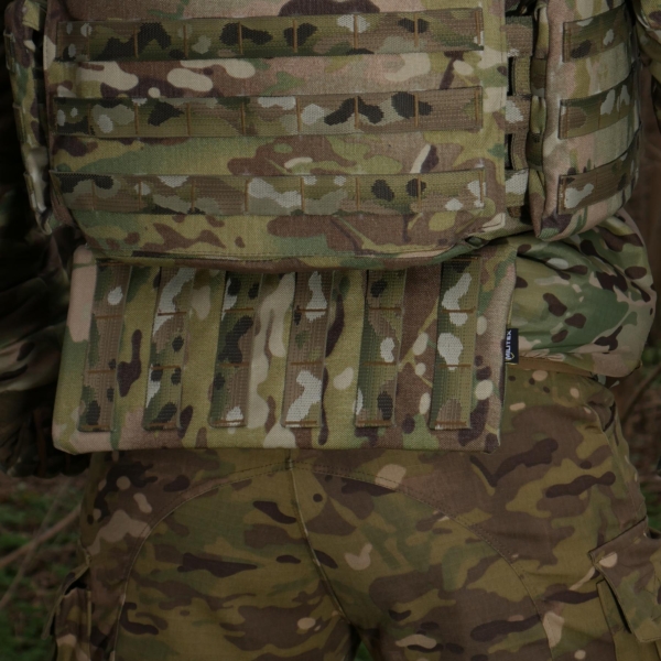 Чохол для захисту попереку під балістичний пакет Militex пошитий із матеріалу CORDURA USA original 1000d - надміцної тканини, стійкої до стирання та високих навантажень. Стропа 100% Поліамід.