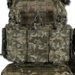 Фронтальна частина оснащена додатковими рядами Molle, велкро панеллю з Laser Cut Molle, ручкою для евакуації та D-кільцями для кріплення спорядження.