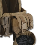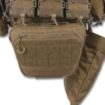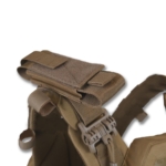 Фронтальна частина має додаткові ряди Molle, посилену велкро-панель, ручку для евакуації та D-кільця для спорядження.