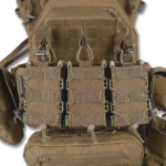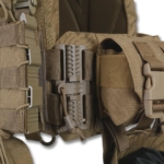 Подвійна система швидкого скидання на плечах і камербандах дозволяє зняти плитоноску за секунди. Тканина Cordura Nylon 6.6 1000D з NIR-просоченням має подвійне поліуретанове покриття, стійка до вологи, стирання та вигорання. Внутрішні частини обладнані демпферними вставками з 3D-сіткою для вентиляції та амортизації.