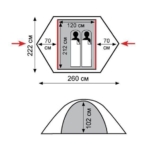 - Двухслойная палатка с двумя входами и 2 тамбурами