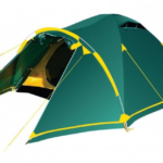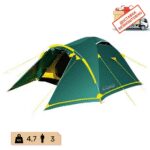 Универсальная палатка Stalker 3 V2 Tramp. Трех дуговая модель конструкции "полусфера" с просторным тамбуром, двумя входами и снежной юбкой по периметру внешнего тента. Дуги из алюминия. Время использования: 3 сезона +: весна, лето, осень и ранняя зима. Назначение: пеший и горный туризм.
