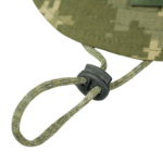 Панама виготовлена з міцної тканини Rip-Stop, яка завдяки армованій нитці у структурі відзначається підвищеною стійкістю до розривів. Матеріал складається з 50% бавовни та 50% поліестеру й має водовідштовхувальне просочення, що робить панаму практичною у використанні за різних умов.