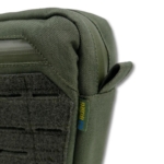 Прорезинена блискавка з двома бігунками та пулером WJ забезпечує швидкий доступ з будь-якої сторони. Кріплення на липучку дозволяє надійно зафіксувати сумку на плитоносці або жилеті з велкро клапаном. Фронтальна LaserCut панель із системою MOLLE підходить для кріплення патчів та додаткового спорядження.