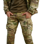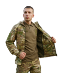 Практичний костюм у забарвленні мультикам, виготовлений із щільної тканини ріп-стоп 65/35, що вирізняється міцністю та водовідштовхувальними властивостями. Завдяки анатомічному крою забезпечує комфорт і свободу рухів під час активного використання.