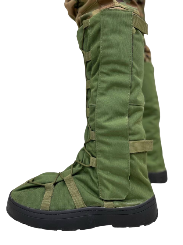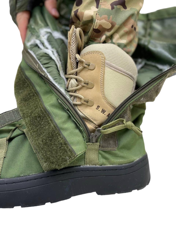 Утеплені бахіли виготовлені зі 100% поліаміду з синтетичним утеплювачем і призначені для використання у вологу та брудну погоду. Вони надягаються поверх черевиків чи берців, надійно захищаючи їх від промокання й забруднення, а також додатково утримують тепло, запобігаючи переохолодженню ніг.