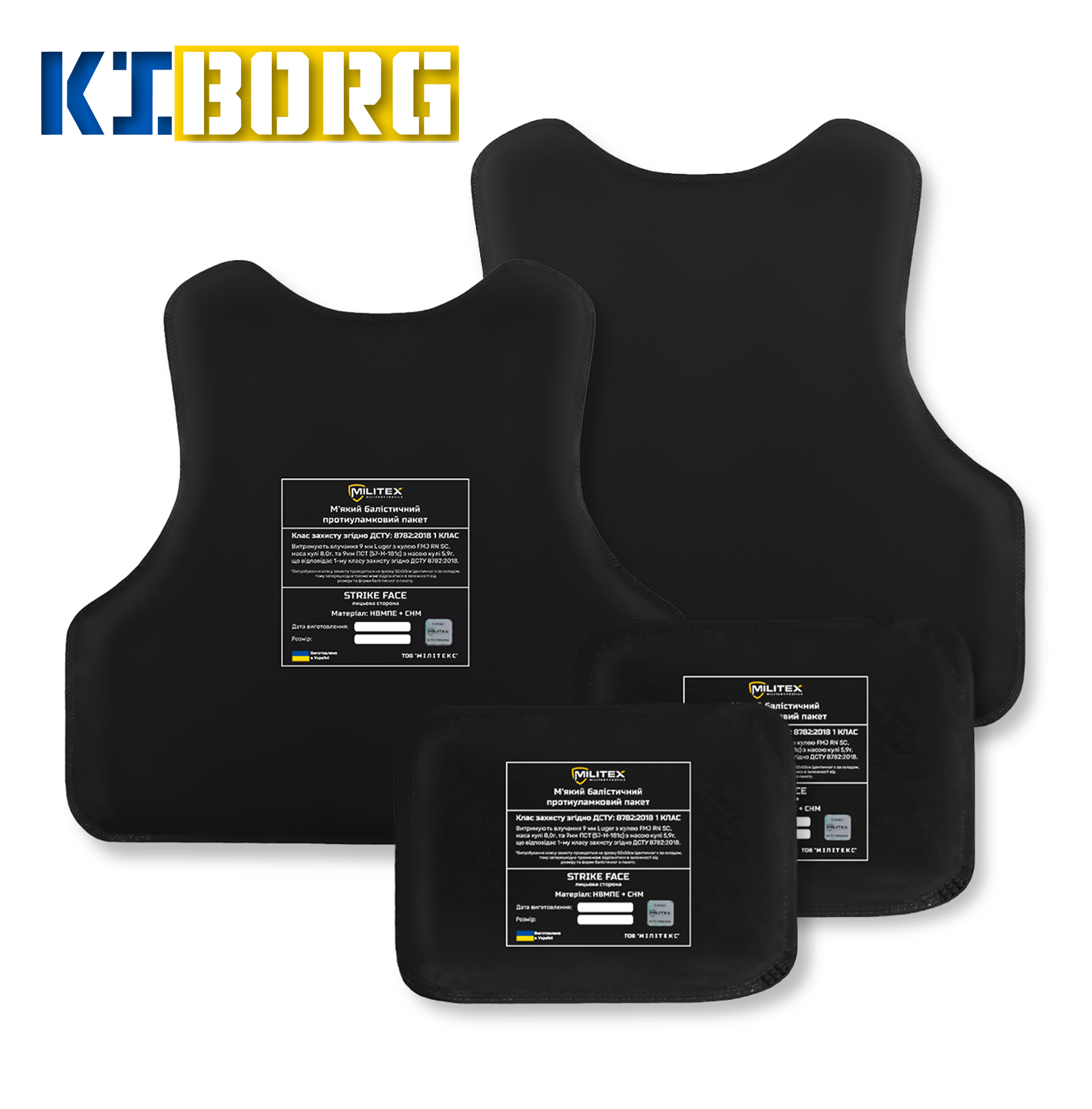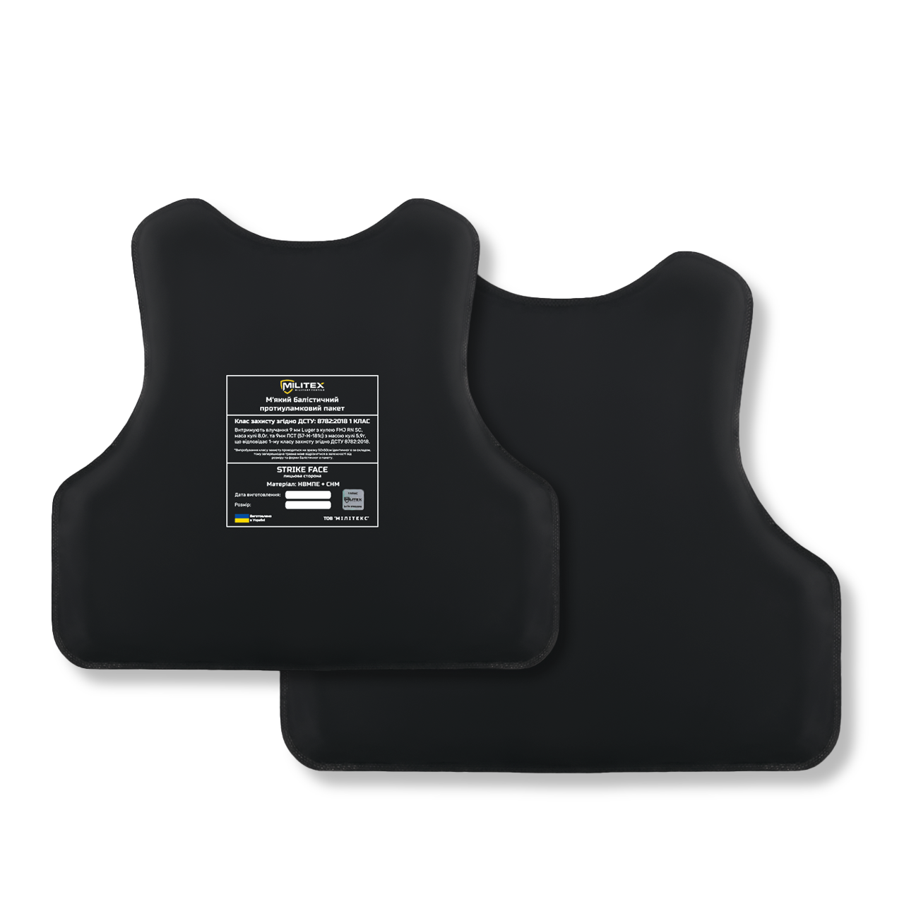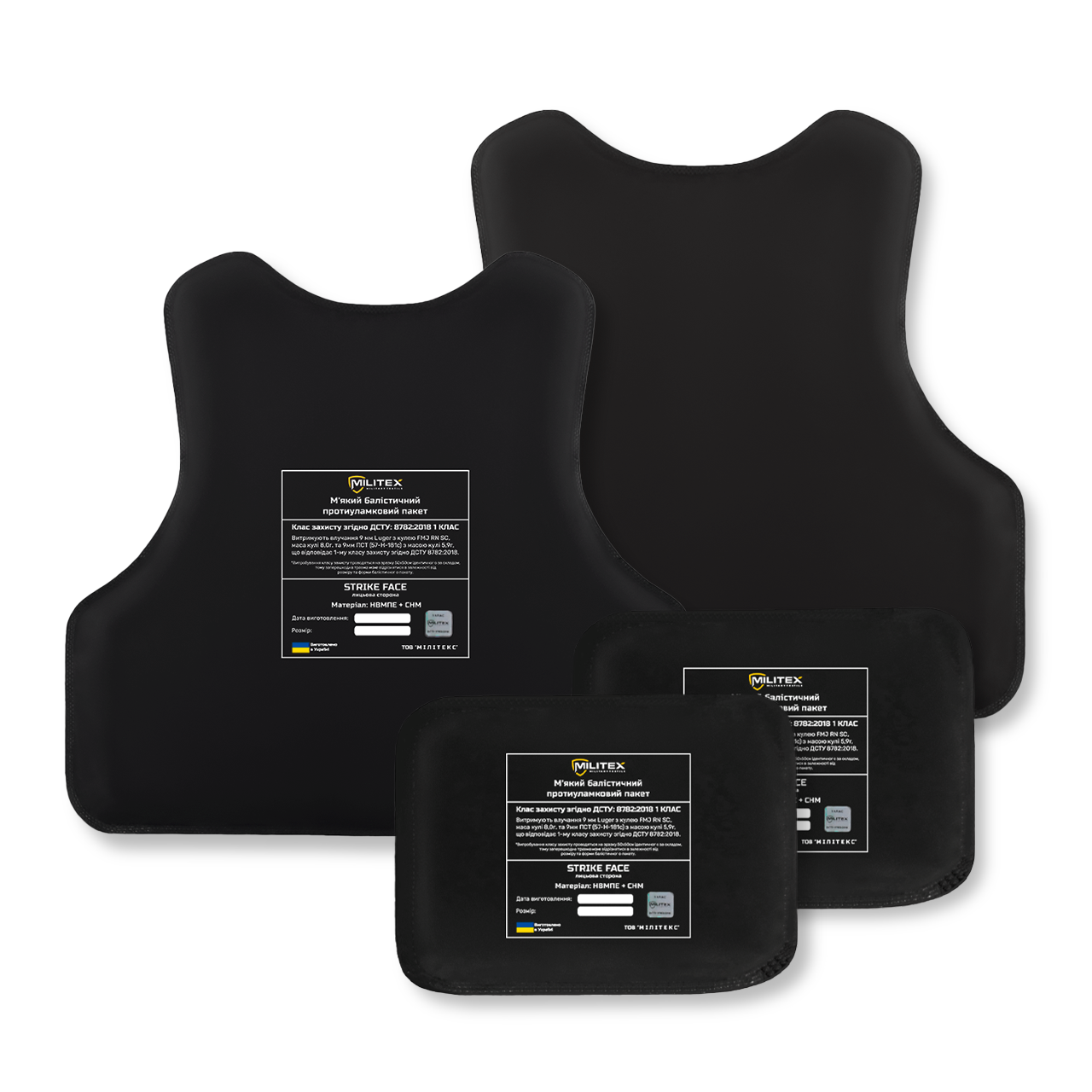 Балістичний бронекомплект для бронежилета Militex M 54,7*42,1/35,7*37,5 см (спина, груди, камербанди 2 шт) (1 клас захисту)