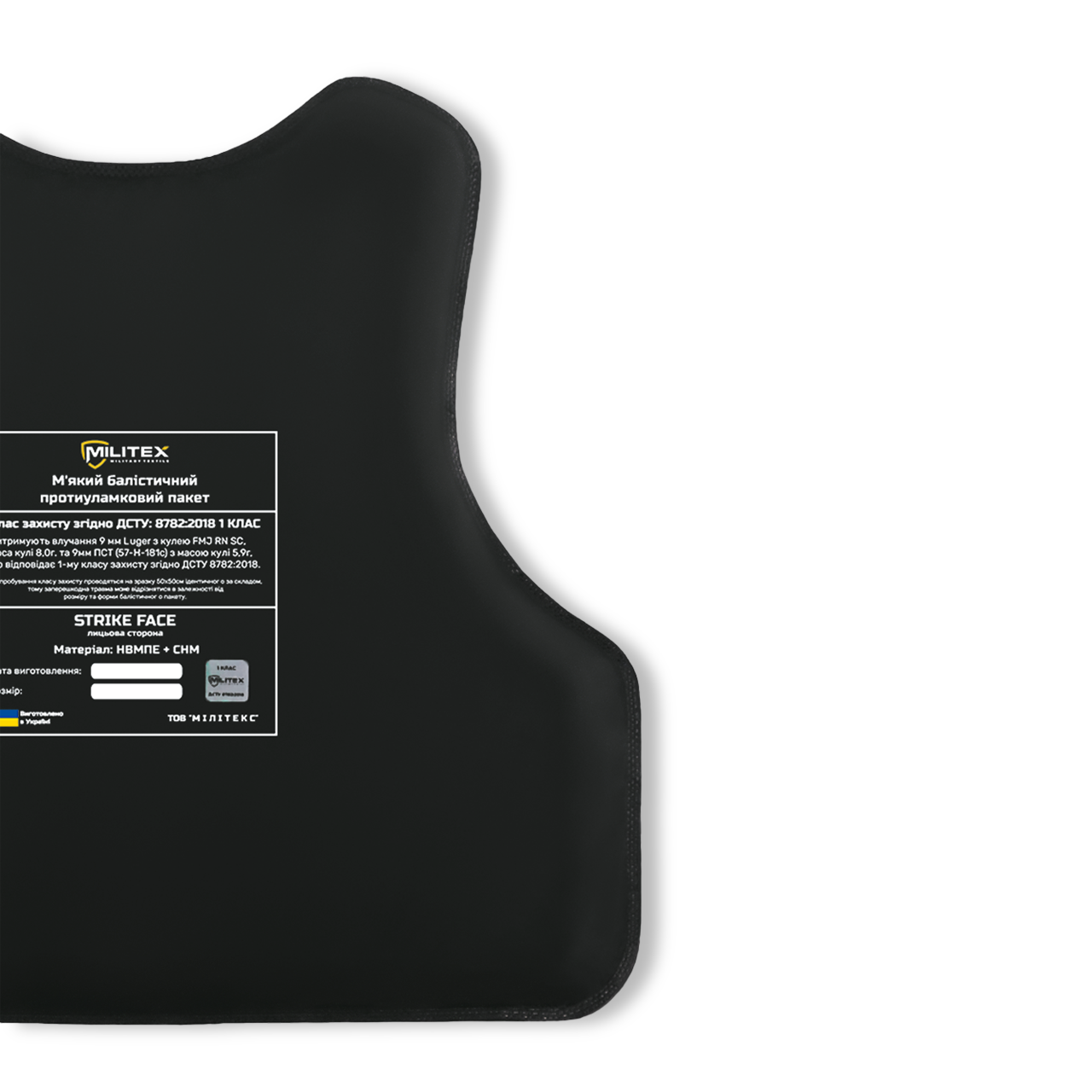 - Надвисокомолекулярний поліетилен високої щільності (UHMWPE) бренду Dyneema®️(USA), що вважається найкращим вибором для виготовлення балістичного захисту і відрізняється