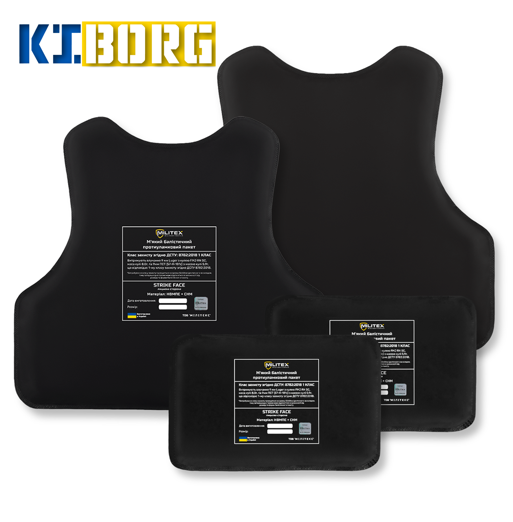 - Надвисокомолекулярний поліетилен високої щільності (UHMWPE) бренду Dyneema®️(USA), що вважається найкращим вибором для виготовлення балістичного захисту і відрізняється