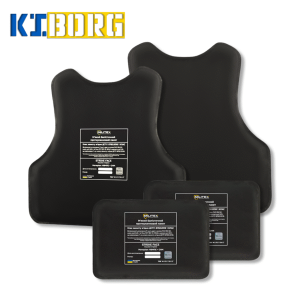 - Надвисокомолекулярний поліетилен високої щільності (UHMWPE) бренду Dyneema®️(USA), що вважається найкращим вибором для виготовлення балістичного захисту і відрізняється