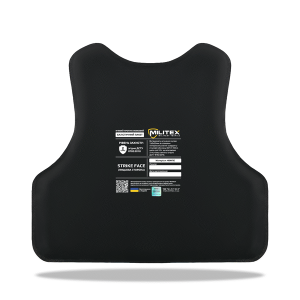 - Надвисокомолекулярний поліетилен високої щільності (UHMWPE). Зверніть увагу, ми не використовуємо в пакетах 2го класу додаткових демпферів, лише поліетилен, що забезпечує високу якість та надійність виробу.