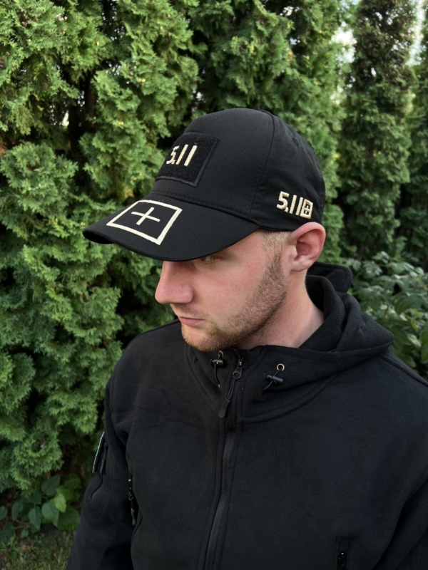 Бейсболка виконана з тканини ріп-стоп, присутня велкро панель під шеврон, також є вишите лого 5.11. Бейболка відмінно сидить на голові та регулюється по-об’єму за рахунок липучки ззаду.