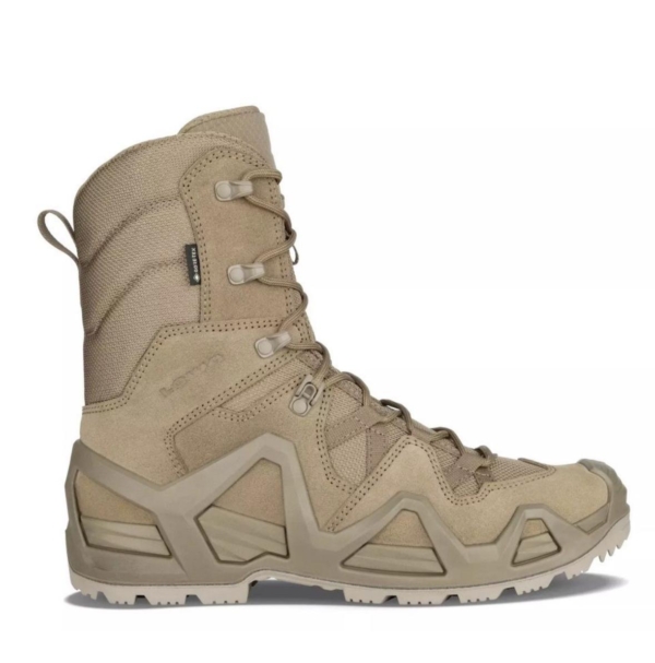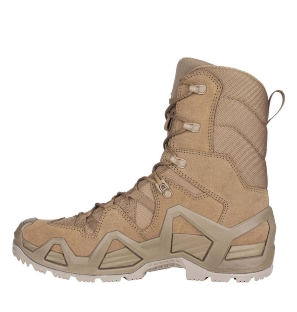 Водонепроникні чоловічі тактичні черевики LOWA ZEPHYR GTX HI TF COYOTE OP ідеально підходять для бездоріжжя та тривалого використання. Верхня частина черевика виготовлена із комбінації натуральної замші з текстильними вставками. Усередині розташована мембрана Gore-Tex, вона гарантує захист ніг від опадів та хорошу паропроникність за будь-яких умов. Між основним матеріалом та мембраною є шар спеціальної піни із закритим осередком. Цей матеріал не має губкоподібної структури, тому не вбирає вологу та зберігає ноги у сухості.