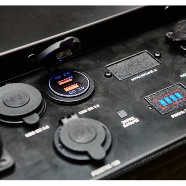 Bandera Power 610 S потужніша зарядна станція з запасом енергії 2,3 кВт зібрана на акумуляторах LiFePO4, має 2500 циклів повного заряду-розряду, цього вистачить на багато років експлуатації при дотриманні всіх технічних умов. У моделі Bandera Power 610 S використовується швидке заряджання, час повної зарядки станції 2 години. Модель обладнана потужним, надійним інвертором із чистою синусоїдою, що дозволяє живити всю апаратуру, споживання якої не перевищує показника номінальної потужності. На верхній панелі: - 1 роз'єм для заряджання від сонячного модуля; - 1 автомобільна розетка 12В; - 3 розетки 220 вольт на потужність 2 кВт. - 4 порти USB Quick Charge. Використовується міцний алюмінієвий корпус, що збільшує надійність та зменшує можливість механічних пошкоджень, а також сприяє тепловідводу. Bandera Power 430 S поставляється в якісній, унікальній сумці-чохлі, виготовленій з водовідштовхувальної тканини, що дозволяє зручно та безпечно транспортувати, зберігати та експлуатувати станцію.