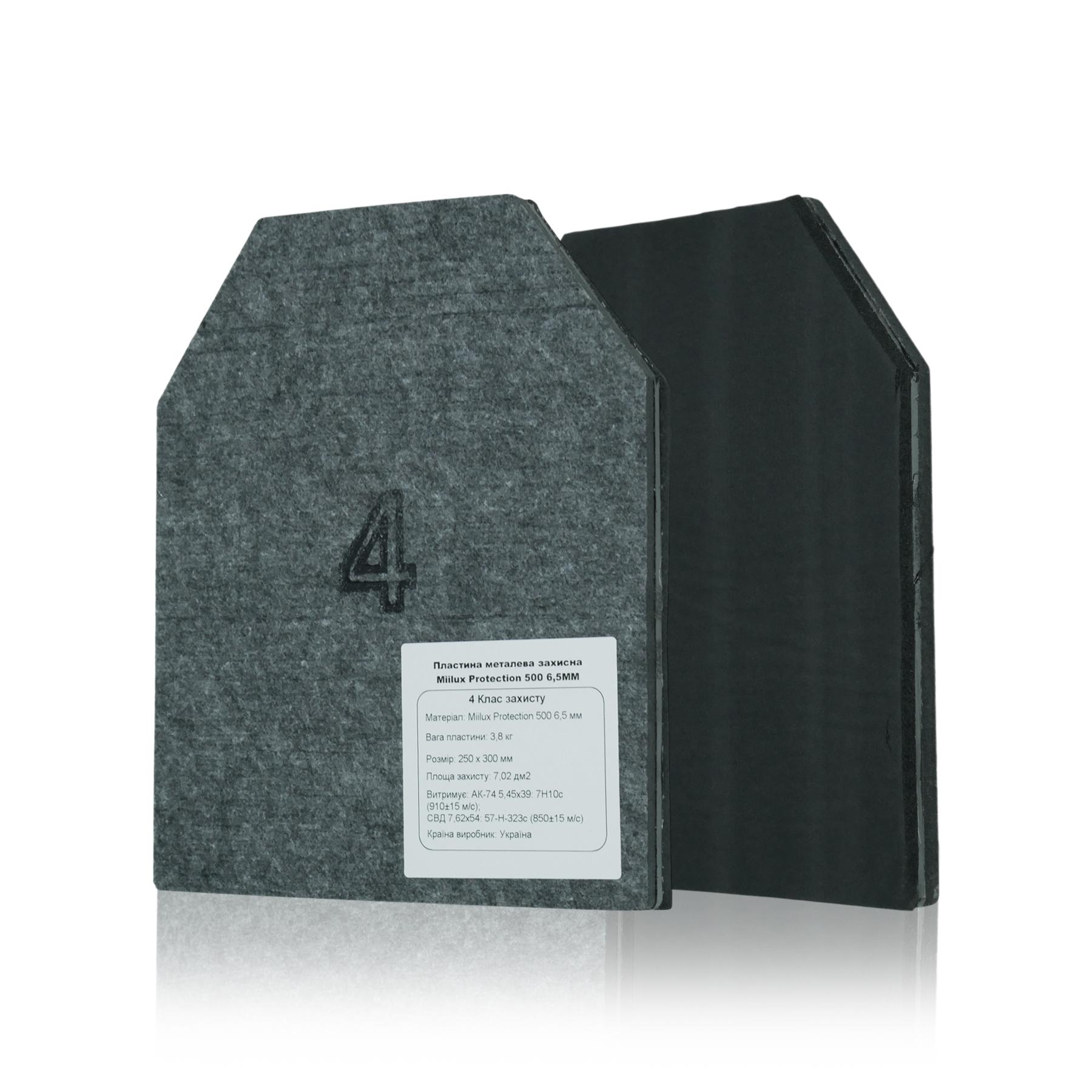 Бронеплити Milux Protection 500 – це гарантія вашої безпеки. Їх товщина становить 6,5 мм, вага лише 3,9 кг. Розмір кожної – 300x250 мм.