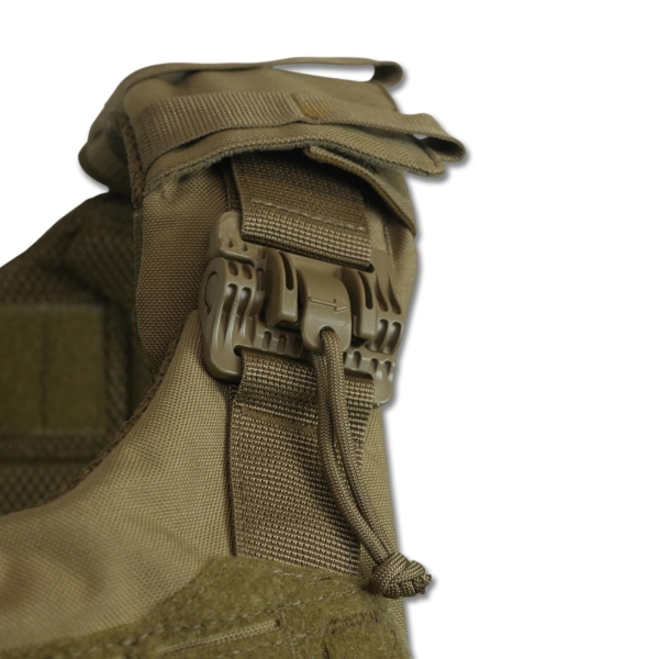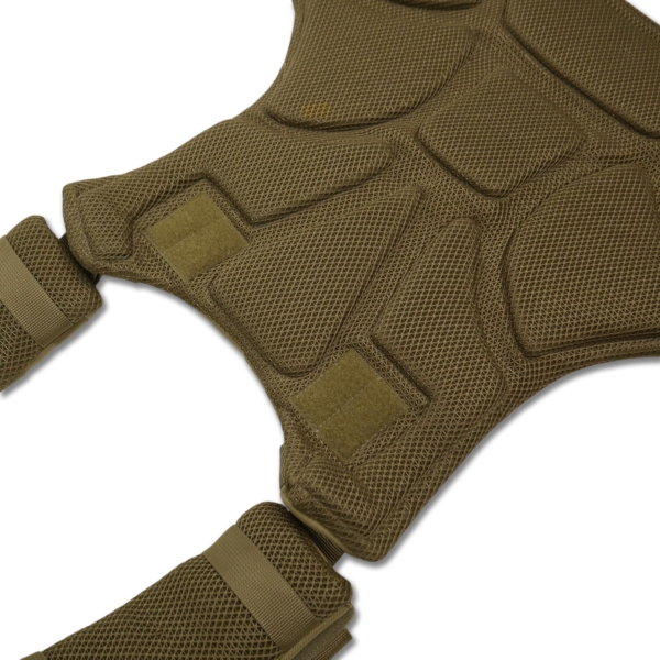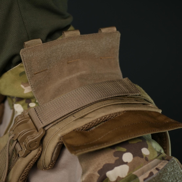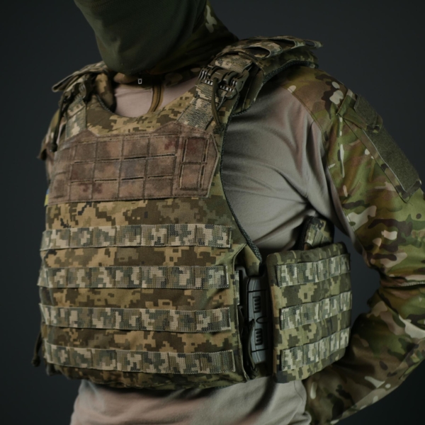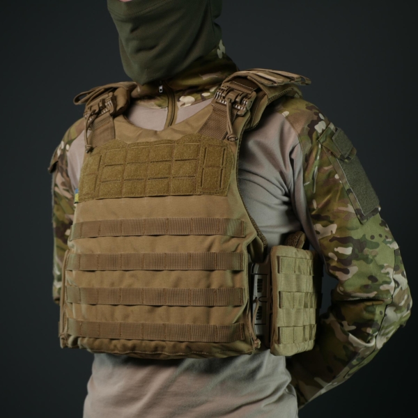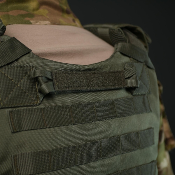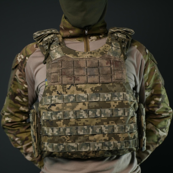 - сумісність з м’якими балістичними пакетами 1–2 класу, а також бронеплитами Medium (31,8×24,1 см) до Extra Large (35,5×28 см)