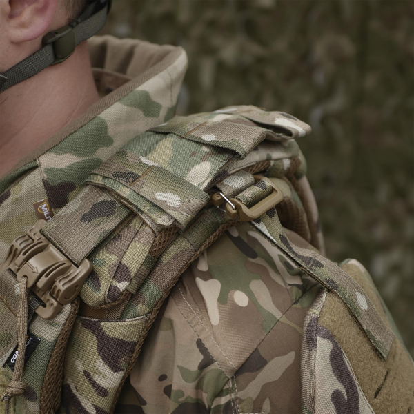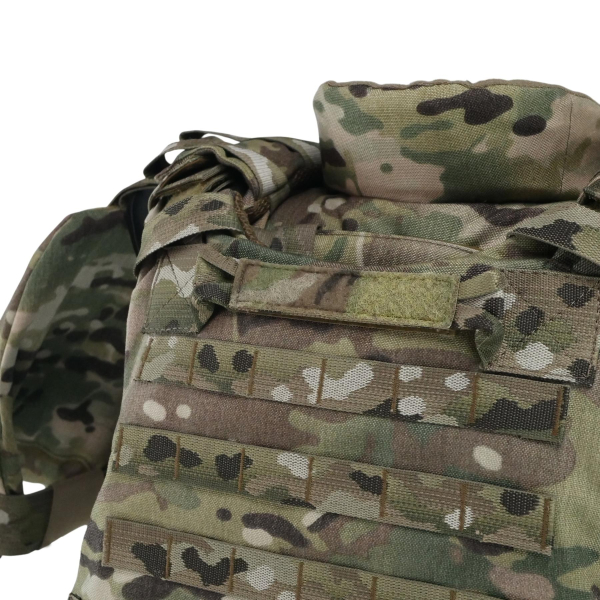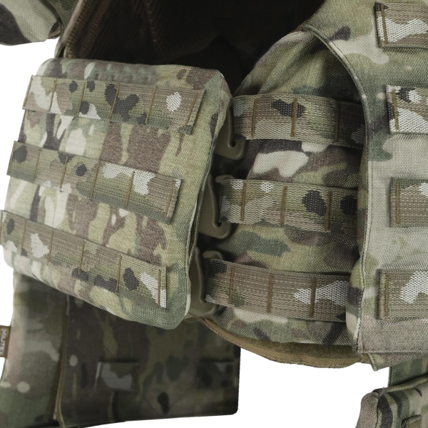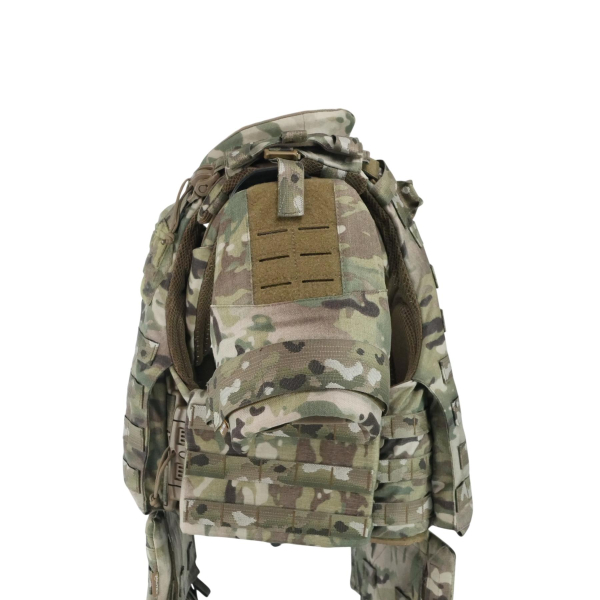 Передня частина оснащена збільшеною Molle-панеллю (5 рядів по висоті, 8 ячейок по ширині) та велкро-панеллю з прорізами для сумісного спорядження. Задня частина має додаткові MOLLE-позиції та посилену евакуаційну ручку.