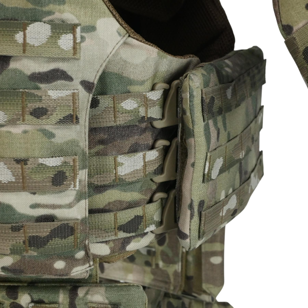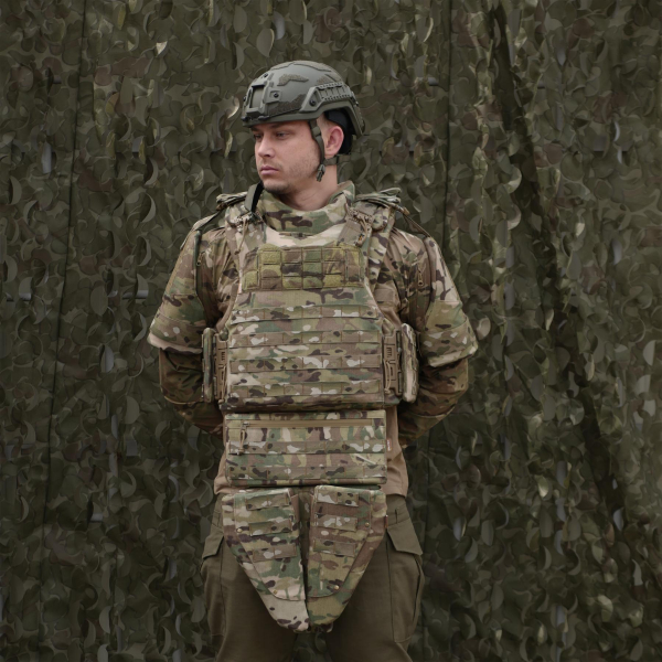 Комплект Militex з балістичним захистом 2 класу cordura USA Multicam – модульна система з розширеною площею захисту, розроблена на основі сучасних ергономічних рішень. Складається з восьми основних елементів: передньої та задньої частин, двох камербандів, двох плечових лямок та додаткового бондажа (дві частини).