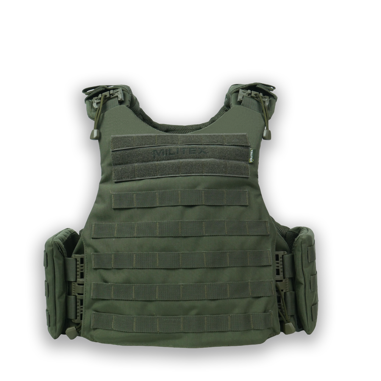 Бронежилет Militex рекомендується використовувати разом із КОМПЛЕКТОМ М'ЯКИХ БАЛІСТИЧНИХ ПАКЕТІВ MILITEX 1-го або 2-го класу захисту, який складається з чотирьох елементів: передньої та задньої частини і двох пакетів балістичного захисту в камербанди.