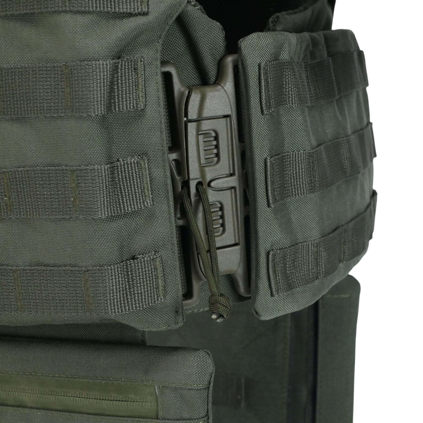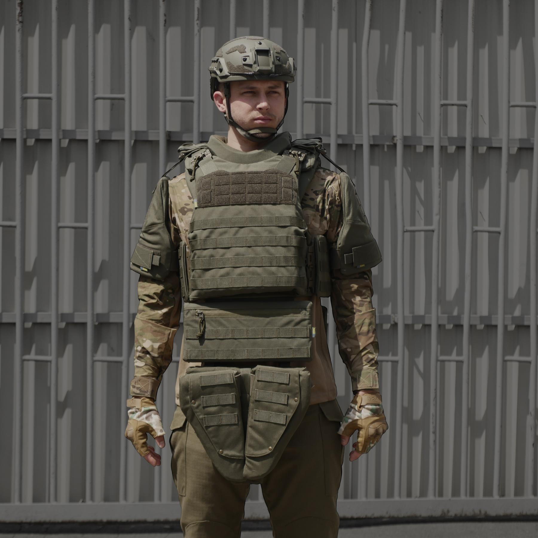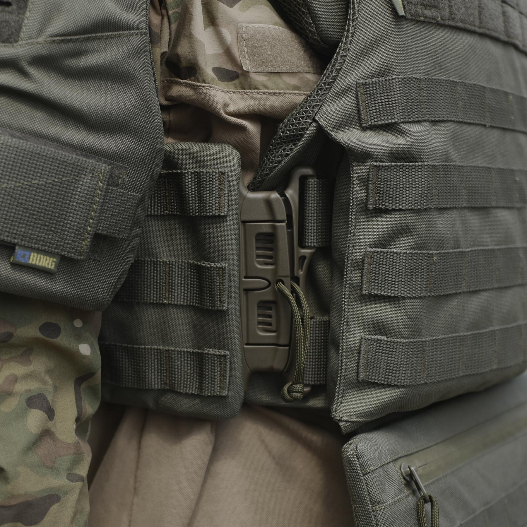- Жилет Kiborg (M / L / XL) з регулюванням по зросту і розміру, ортопедичними вставками, вентиляційною 3D-сіткою, демпферними падями та швидкоскидною системою. Виготовлений з Cordura 1000D з водо- та вогнестійким просоченням, оснащений посиленим MOLLE-інтерфейсом.