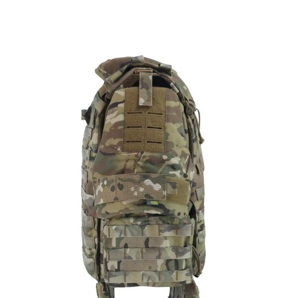 - Анатомічні лямки з можливістю заміни м’яких подушок або встановлення балістичного захисту, мають подвійне регулювання з фіксацією клапаном і додаткові MOLLE для підсумків під рацію або турнікет. Передбачені кріплення для захисту шиї та плечей.