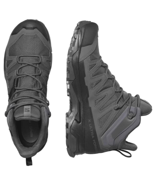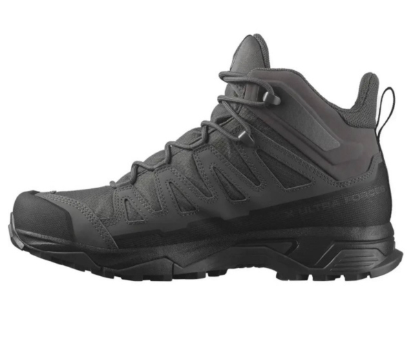 Черевики Salomon X ULTRA Forces MID GTX — ідеальний вибір для тактичних операцій, що вимагають одночасно маневреності та стабільності. Вони поєднують в собі легкість трейлових кросівок та надійність туристичного взуття, роблячи їх незамінними в умовах як демісезону, так і під час літніх активностей.Модель X ULTRA Forces MID GTX оснащена водонепроникною мембраною GORE-TEX, яка забезпечує надійний захист від вологи під час тривалого перебування в умовах вологого клімату. Завдяки цьому черевики підходять для використання в найсуворіших погодних умовах, забезпечуючи сухість і комфорт.Верхній матеріал черевиків виготовлений з поєднання міцних тканин і сітки, що не відбиває світло, для додаткового захисту від механічних пошкоджень і проникнення сміття. Спеціальна конструкція язичка запобігає попаданню сміття всередину черевика, забезпечуючи чистоту та комфорт.- Система Advanced Chassis™ забезпечує стійкість і захист від проколів, зберігаючи при цьому свободу рухів.- Унікальна підошва Contagrip® Chevron Lugs гарантує надійне зчеплення на різноманітних поверхнях, що робить черевики ідеальними для складних маршрутів і нерівної місцевості.- Додаткова підтримка стопи надається за допомогою вставки для підвищеної стійкості, що є ключовим під час активних тактичних дій.- Захист пальців від пошкоджень забезпечує система Protective Toe Cap.- Устілка OrthoLite® та високоефективна піна Energy Cell EVA відповідають за комфорт і амортизацію, що мінімізує втому під час тривалих переміщень