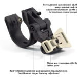 Додаткова петля в місці кріплення дозволяє притиснути конструкцію кріплення до шолома і прибрати всі люфти за допомогою bungee на шоломі або гумовим шнурком на липучці