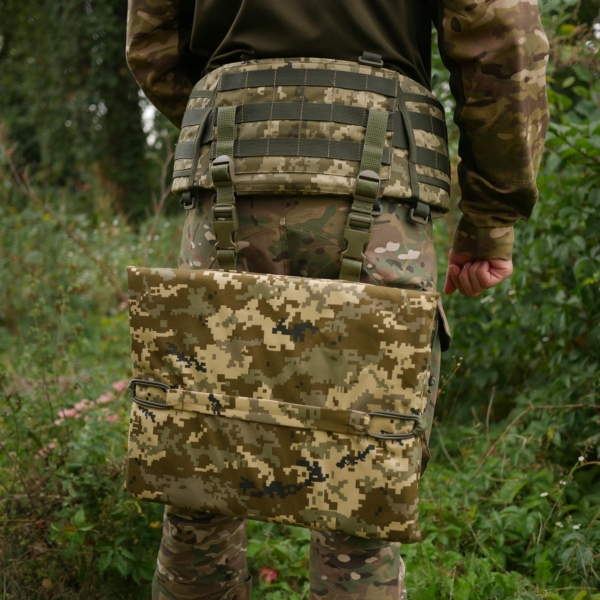 Килимок трансформер, що складається з 3-х секцій. Невеликі розміри та можливість використовувати в трьох різних положеннях, робить цей виріб надзвичайно універсальним та незамінним в польових умовах. Оскільки килимок має відмінні теплоізоляційні властивості, ви мінімізуєте ризики переохолодження сидячи на холодній землі або "броні".